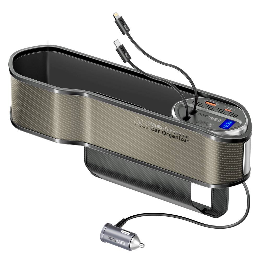 تمتع بتجربة شحن مريحة وآمنة أثناء القيادة مع منظم سيارة متعدد الوظائف الذي يتميز بمحطة شحن بقدرة 65 واط ويشمل منافذ ثابتة وكوابل قابلة للسحب لشحن الهواتف الذكية والأجهزة اللوحية والساعات الذكية بسهولة.